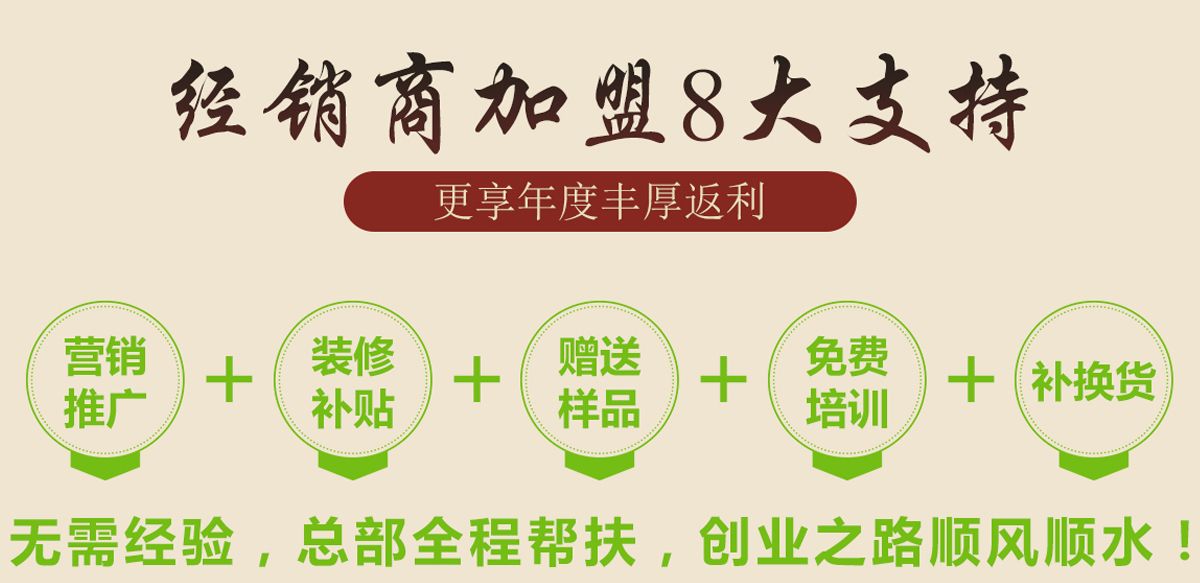 公司将按照区域代理商提供高比例的促销品、海报、产品宣传等动销物料。